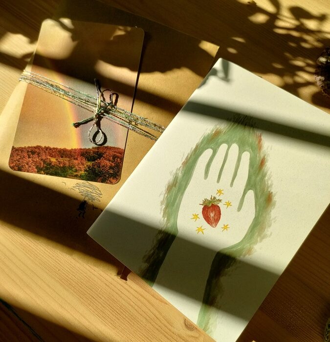 Set di cartoleria con taccuino e carte fatte a mano per la decorazione